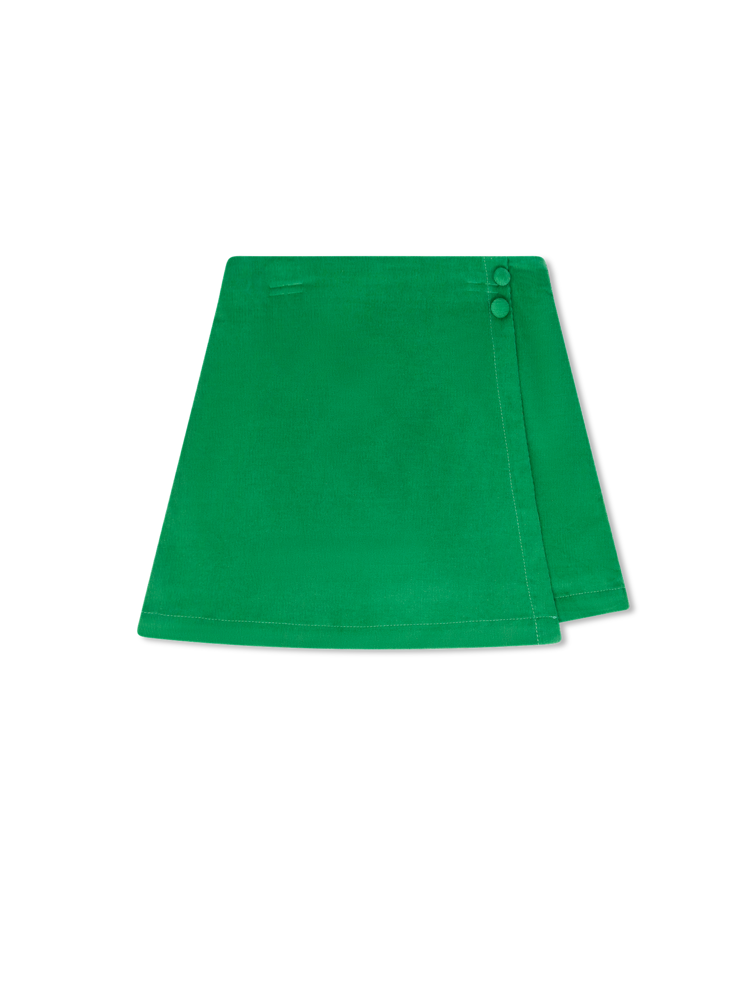 Classic meets contemporary with our Julia Skirt in Garland Green Corduroy, featuring a stylish side pleat and two-button detail. Crafted from soft, durable corduroy, this skirt adds a touch of sophistication to any outfit while maintaining everyday comfort. The side pleat offers a subtle flair, giving it a playful, modern silhouette. Perfect for pairing with sweaters, blouses, or tees, this versatile skirt is ideal for school or weekend outings. The neutral khaki shade makes it easy to mix and match, making it a must-have piece in your tween's wardrobe.