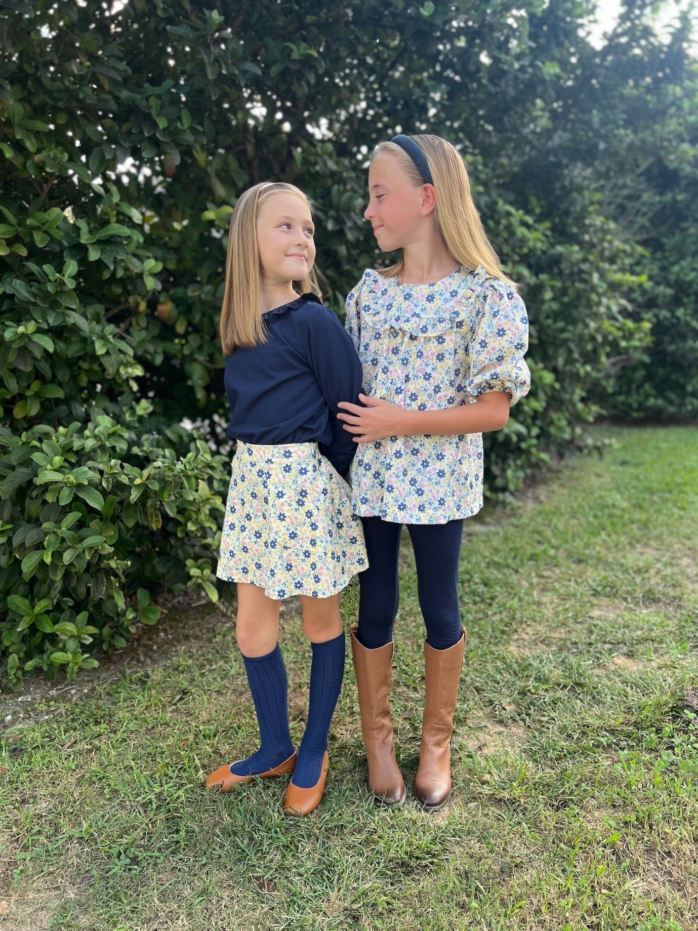 The Kristen Skirt in Lilibet Floral corduroy brings a playful flair to classic style. This skirt is designed with a hint of volume, giving it a fun, flared silhouette that moves beautifully with every step. Made from soft, playful corduroy, it's both stylish and comfortable, perfect for pairing with cozy sweaters or crisp blouses. Ideal for everyday wear or special occasions, the Kristen Skirt is a versatile wardrobe essential for the fashion-forward tween who loves a touch of retro charm.
