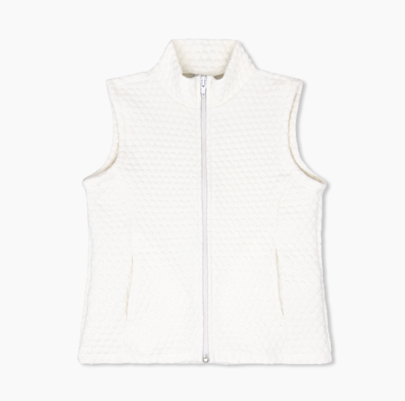 Add a touch of elegance to your tween's wardrobe with the Virginia Vest in Cream Quilted Knit. This sophisticated vest features a luxurious quilted knit fabric, providing both warmth and style. The crisp white color enhances its versatility, while the sleek zipper front adds a modern, functional detail. Ideal for layering over sweaters or tops, the Virginia Vest offers a refined look that's perfect for any occasion. Whether for school, weekend outings, or special events, this vest combines classic charm with contemporary flair.