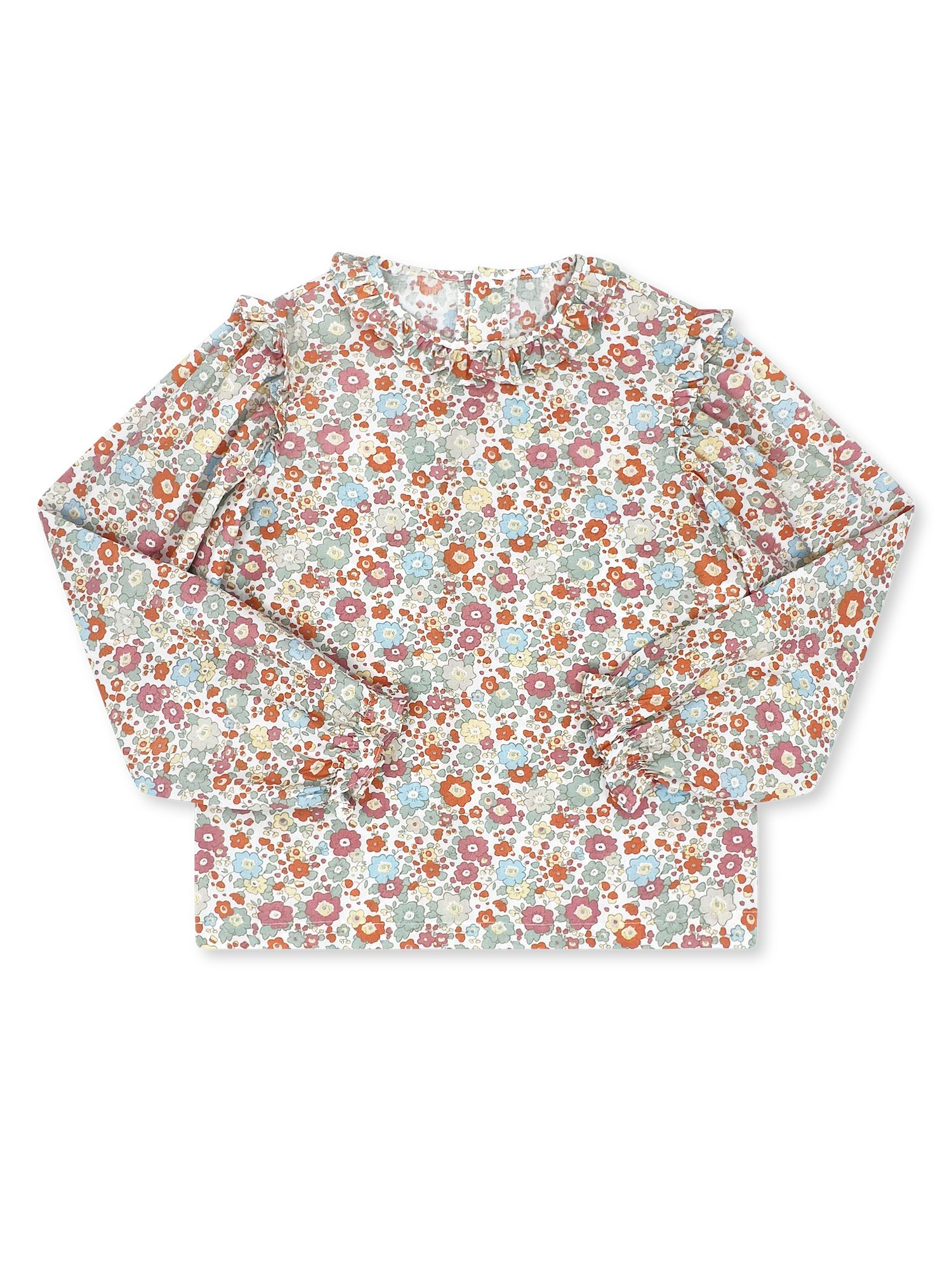 Bring a touch of floral elegance to your tween's wardrobe with the Evelyn Long Sleeve Blouse in Whimsy Blooms. This charming blouse combines delicate ruffles with a stylish silhouette, making it a perfect choice for any occasion.